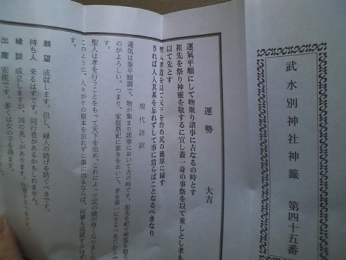 おみくじを引いてみたらなんと 大吉(嬉)