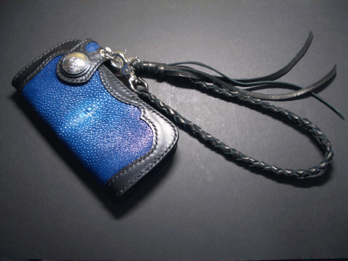 ブラックに染色したスティングレイ(ポリッシュ加工)とブラックのサドルレザー、ブラックシニューで仕上げましたッ!!