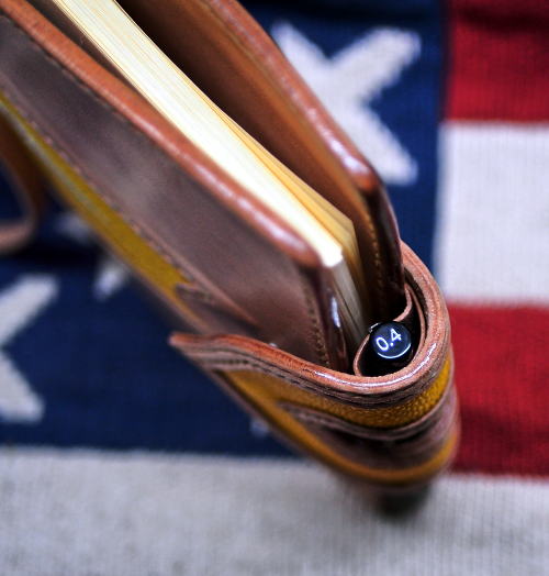 アメ色にエイジングする無染色革です。